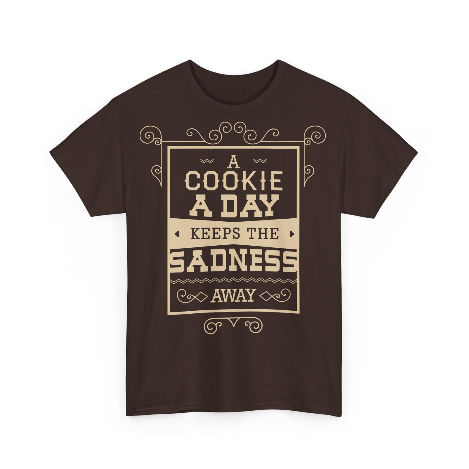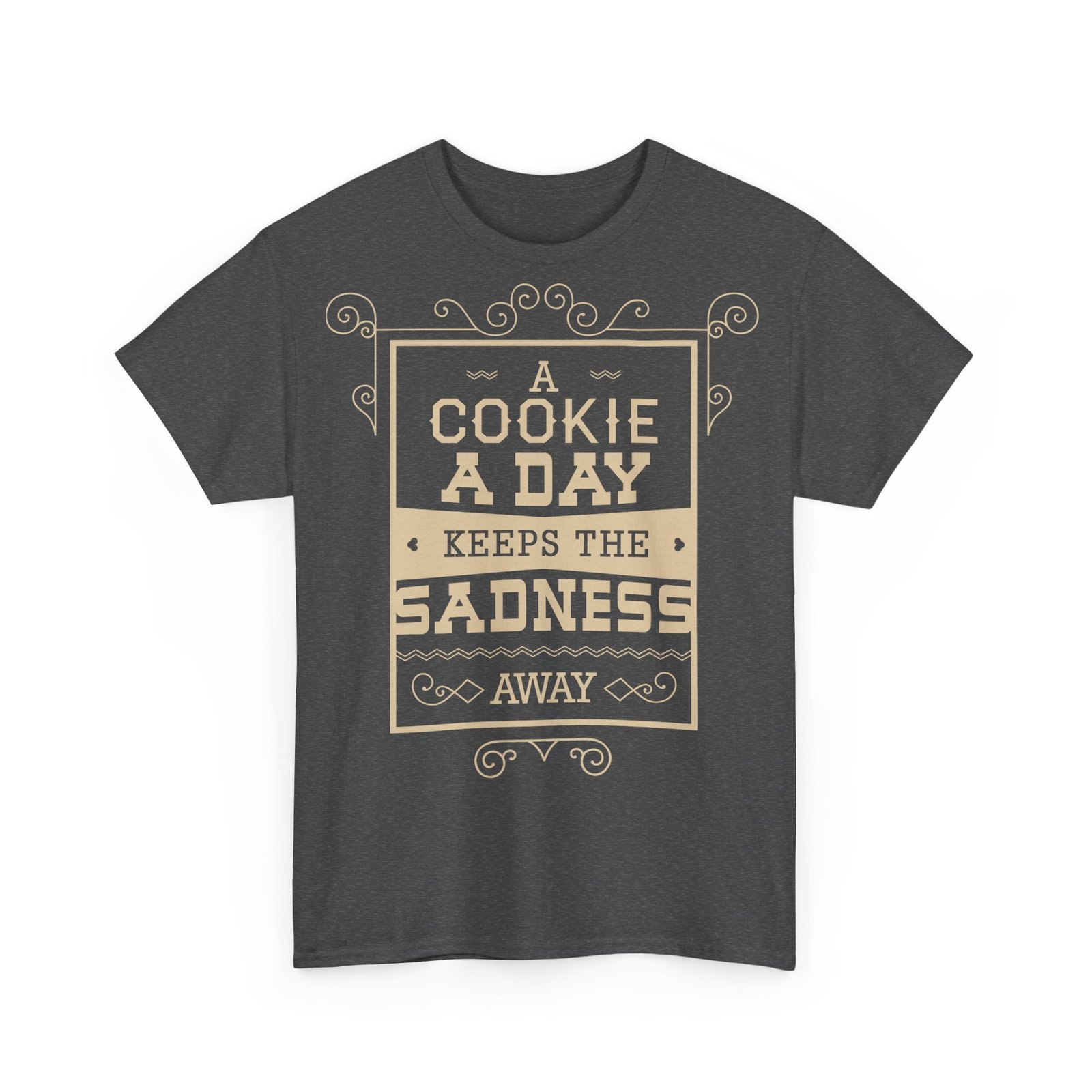 This A Cookie A Day Keeps The Sadness Unisex Heavy Cotton Tee has the classic cotton look and feel. Casual elegance will make it an instant favorite in everyone’s wardrobe.